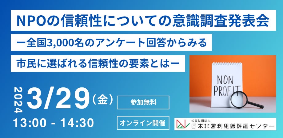 市民に選ばれるための要素とは?【全国3,000名の意識調査を発表。】NPOの信頼性に関する意識調査発表会を3/29(金)に開催。市民セクターの各専門家による解説&ゲストトークも実施