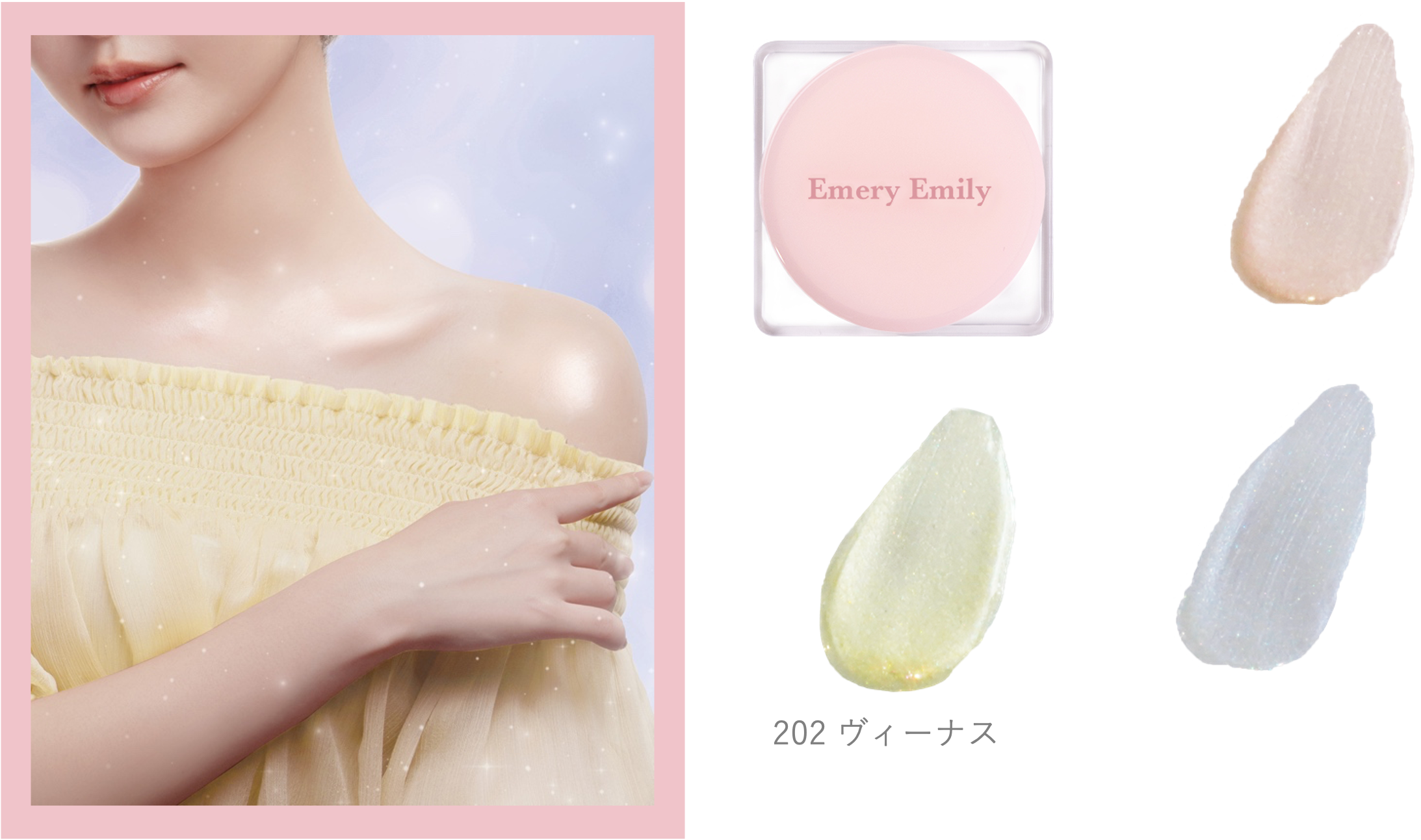 顔にはもちろん、鎖骨や肩、脚などのボディにも使えるジェルハイライト。数量限定のアイテムです。
