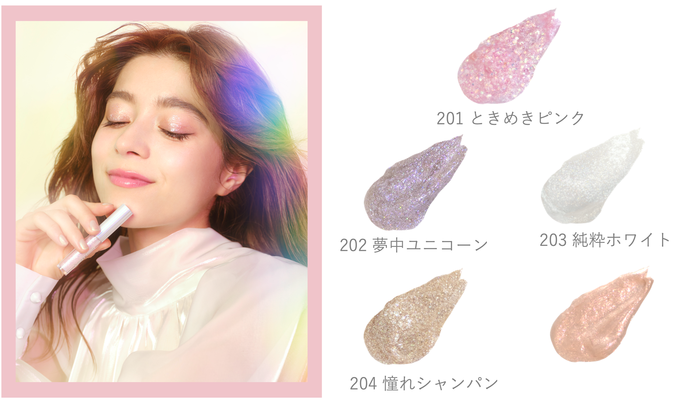 第一弾は、ドリーミー グリッターライナー・涙袋ペンシル・4カラー ミニアイパレット・ジェルハイライトの4アイテムを発売します。