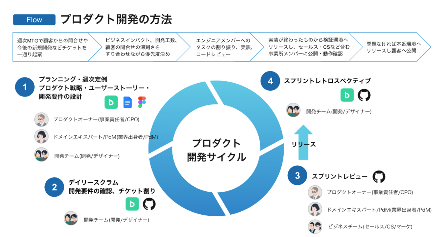 当社は、ソフトウェアエンジニアやデザイナー、プロダクトマネージャーといった職種を中心としたプロダクト部門、法人営業や事業開発などのセールス部門、財務や人事といったコーポレート部門の3部門で構成されております。