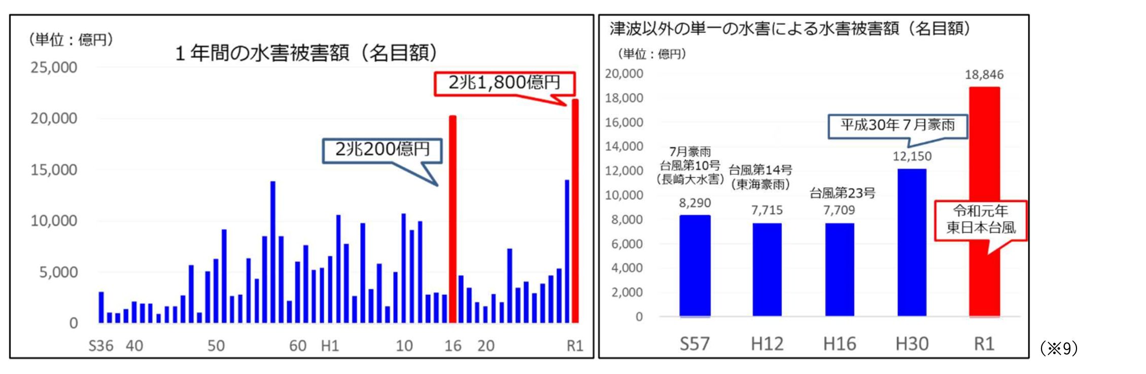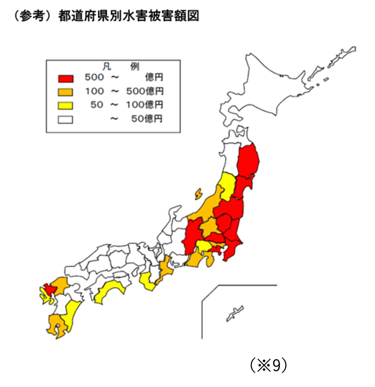 ※9 国土交通省「令和元年東日本台風の発生した令和元年の水害被害額が統計開始以来最大に ~令和元年の水害被害額(確報値)を公表~」https://www.mlit.go.jp/report/press/content/001396912.pdf