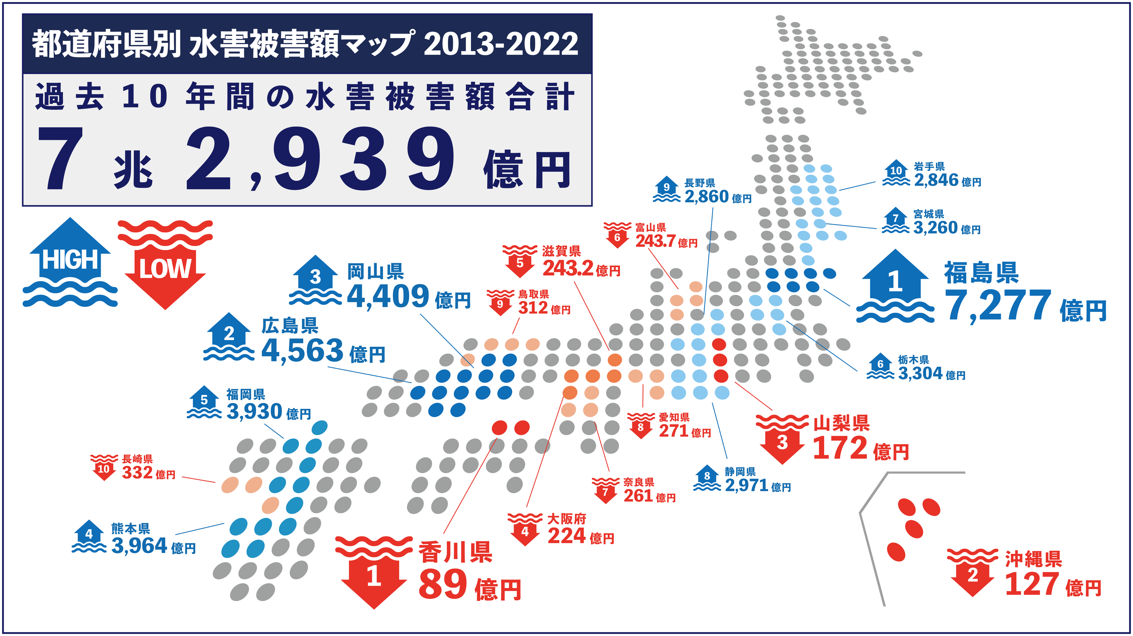過去10年の水害被害額を振り返る 被害総額は7兆円以上・1位は「福島県」都道府県別の水害被害額マップを公開