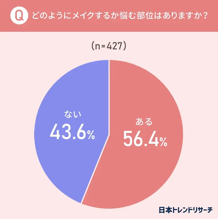 また、普段メイクをしている女性に対するアンケートでは56.4%と半数以上が「悩む部位がある」と回答し、もっとも悩む部位については65.6%が「眉」だと回答しています。(「日本トレンドリサーチとamyによる調査」による。https://trend-research.jp/15549/ https://amy-beauty.net/)
