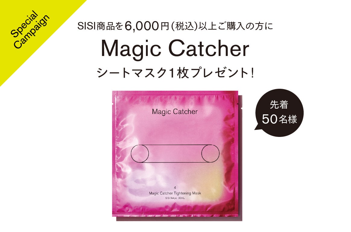 期間中、店頭にてSISI商品を税込合計6,000円以上お買い上げの方先着【50名様】に、会場にて「三越伊勢丹アプリ」内のクーポン画面をご提示いただくとSISIのシートマスク「マジックキャッチャータイトニングマスク」(30mL)1枚(税込1,150円相当)をプレゼントいたします。 ※なくなり次第終了となります。
