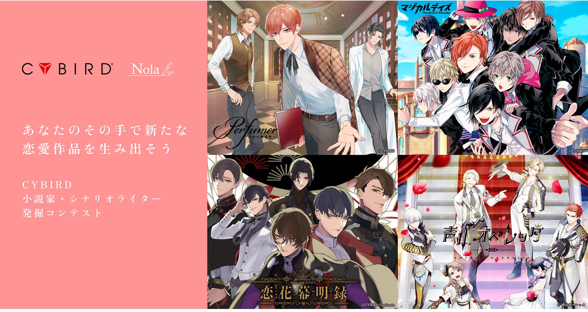 作家と企業をつなぐ創作プラットフォーム「Nola(ノラ) https://nola-novel.com/ (※1)」を運営する株式会社indent(本社:東京都千代田区、代表取締役社長:釜形勇気 以下、「indent」)は、全世界でのシリーズ累計会員数4,000万人を誇る女性向け恋愛ゲーム「イケメンシリーズ」を運営する株式会社サイバード(本社:東京都渋谷区、代表取締役社長 兼 CEO 長嶋 貴之、以下「サイバード」)と、業務提携契約の第一弾プロジェクトとして共同主催した『CYBIRD 小説家・シナリオライター発掘コンテスト』の最終選考を実施し、厳正なる審査を経て、「出版部門」から特別賞を2作品・「恋愛ゲームシナリオ部門」から特別賞を1作品選出いたしましたことを、下記の通り発表いたします。