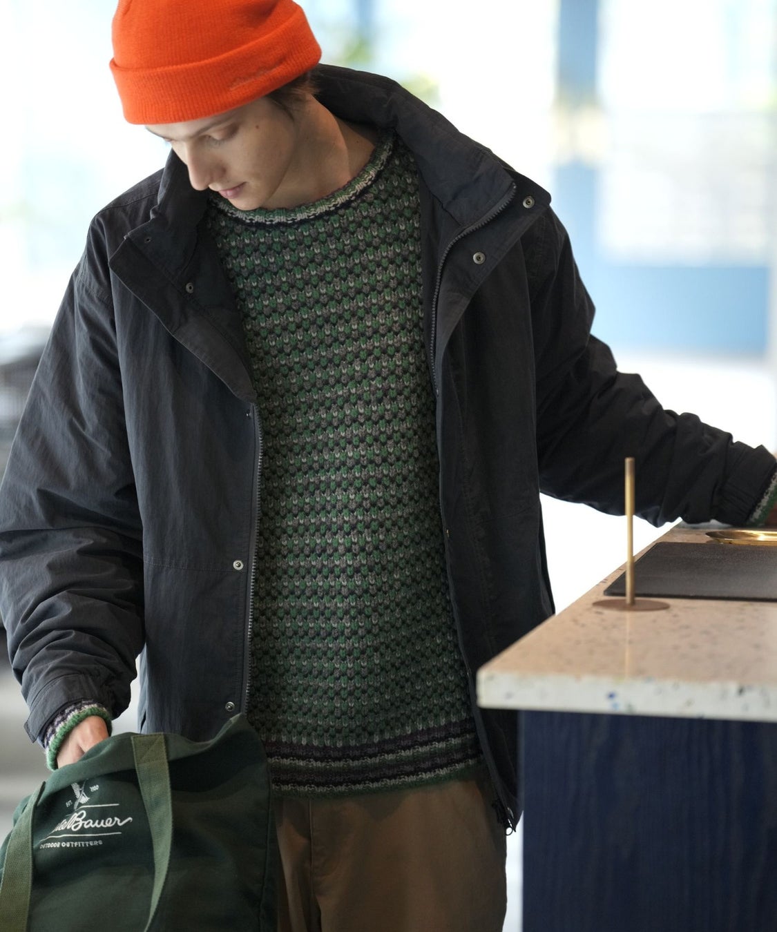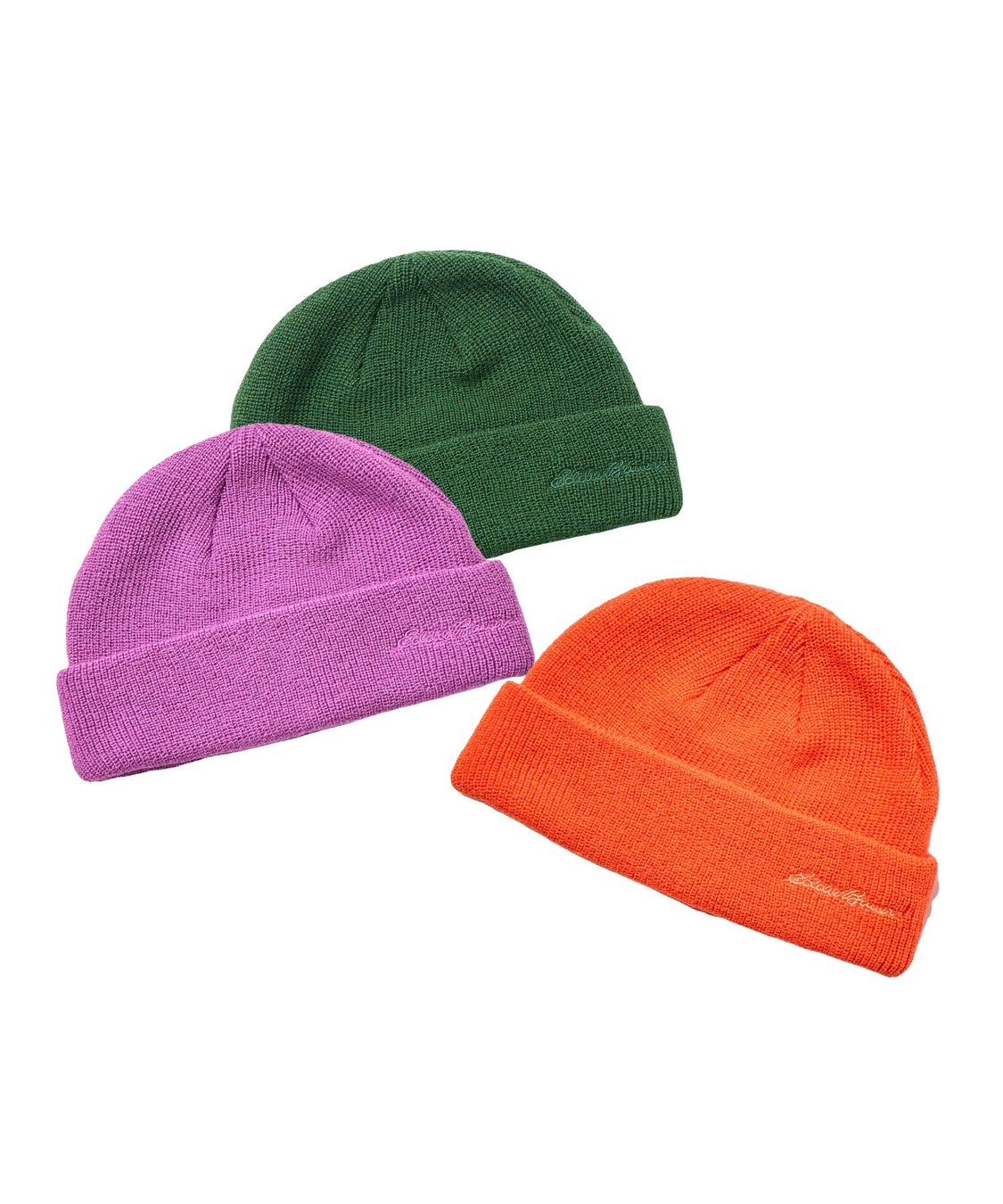 秋冬シーズンの着こなしを彩るアクセントとして提案する、別注ワッチキャップ。ベーシックになりがちなメンズスタイルに“挿し色の楽しみ”をプラスできるよう、オレンジ・グリーン・パープルの3色展開でご用意。Eddie Bauerのロゴ刺繍をさりげなくあしらい、存在感と洒落感を両立しました。スタイリングにひとさじの遊び心を加えたい時におすすめのアイテムです。