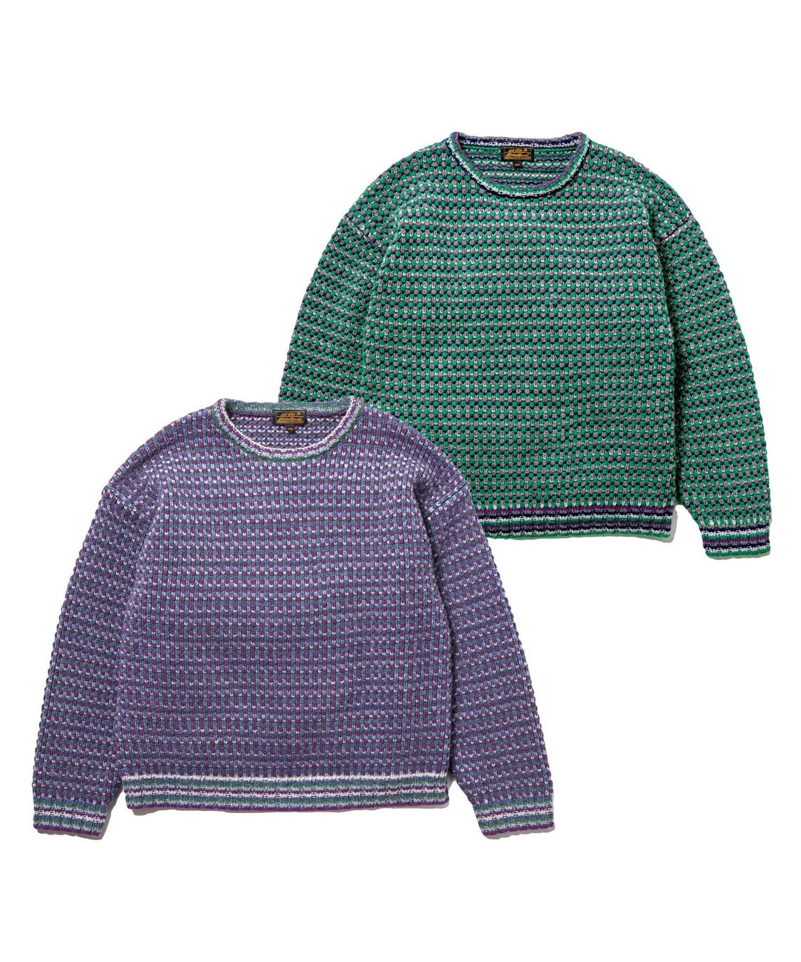 80〜90年代に誕生したエディー・バウアーの隠れた名品「ポップコーンニット」を、『men’s FUDGE』ならではの感性で再解釈。ドロップショルダー仕様のゆったりとしたシルエットに仕立て、4色のウール糸を複雑に編み込んだ立体感のある編地が、秋冬スタイルの主役にも名脇役にもなる存在感を放ちます。アウターの下でも映えるデザイン性と、程よくリラックスした着心地を両立した一枚。