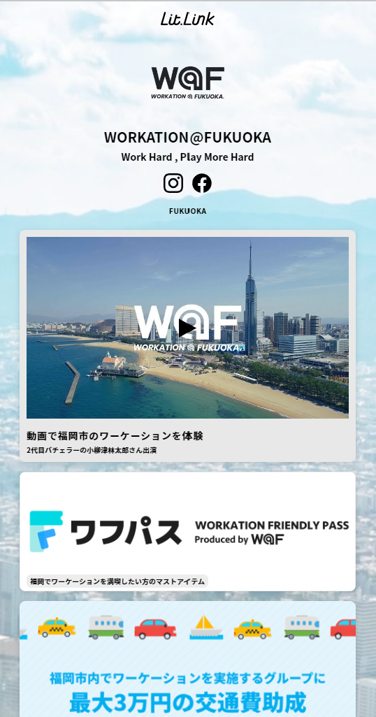 今回、「地方自治体公式lit.link作成プロジェクト」第一弾として、福岡市のワーケーション情報をまとめた公式lit.linkページを作成しました。