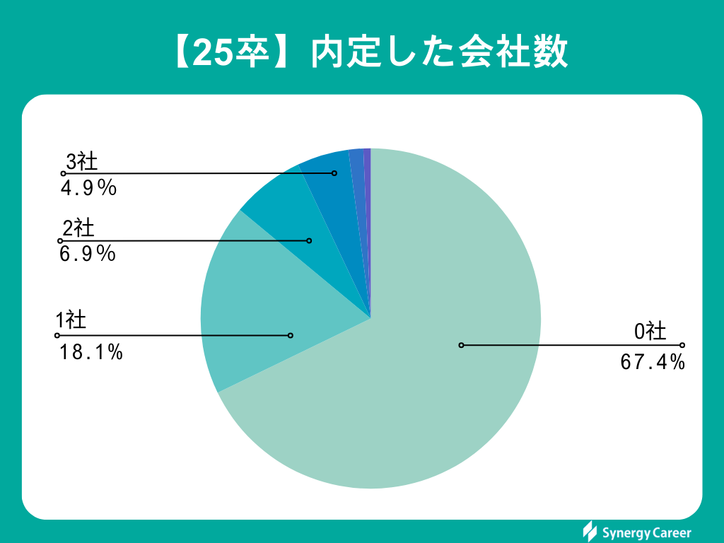 「内定を持っていない(67.4%)」「1社(18.1%)」「2社(6.9%)」の順で多い結果になりました。7割近くの学生が内定を持っていない時期であるといえます。