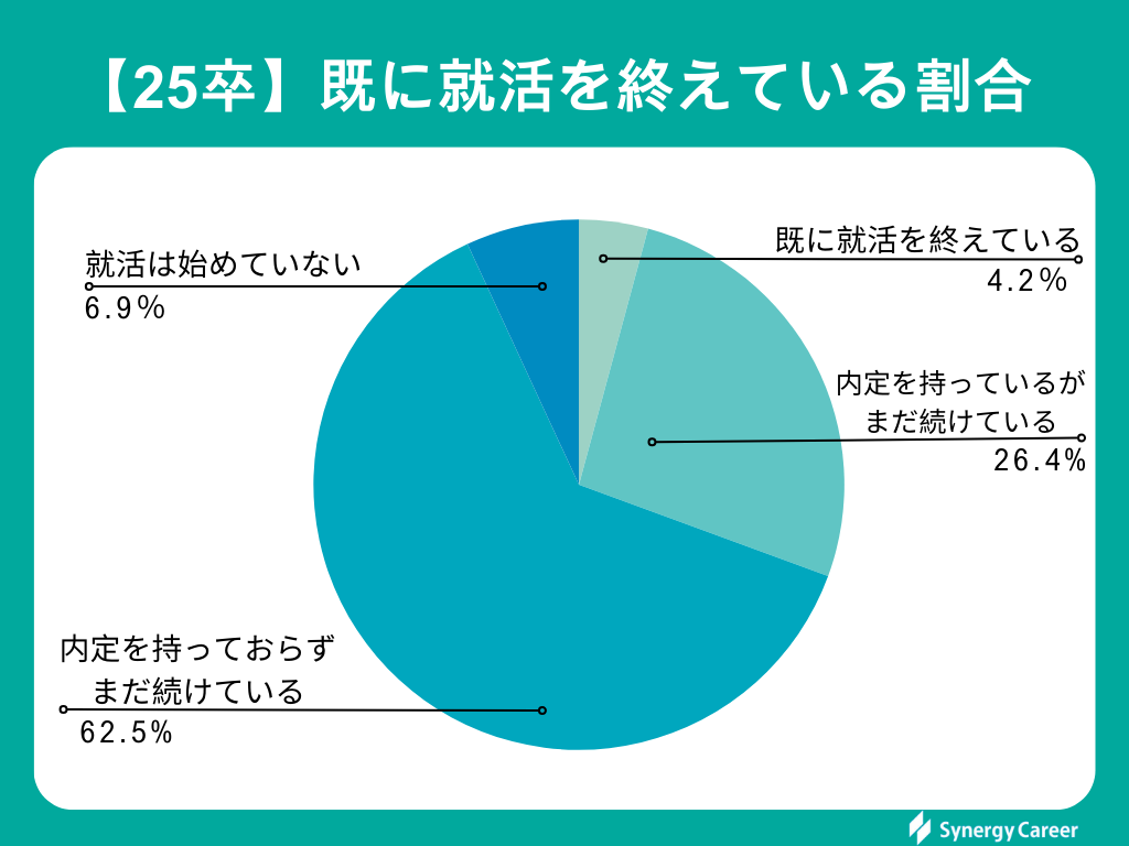 また、既に就活を終えている25卒生は「4.2%」でした。少数ではあるものの、行動が速い学生も一定数いることが分かります。