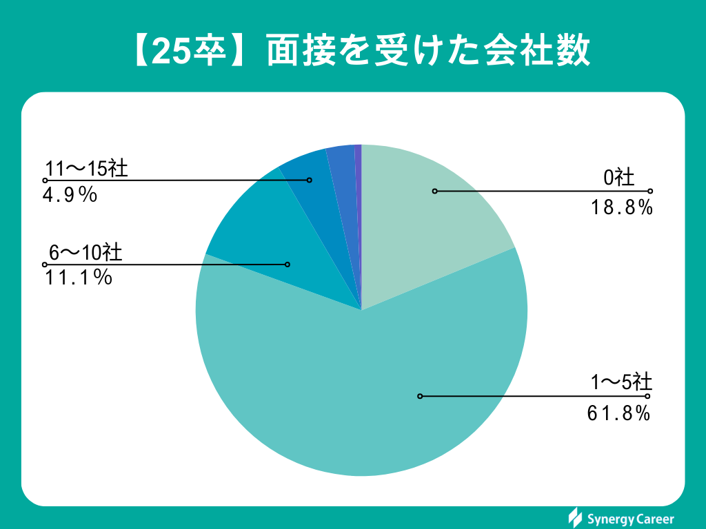 「1~5社(61.8%)」「面接を受けていない(18.8%)」の順で多いことが分かりました。まだ、面接への経験が豊富な学生はまだ少ないことが分かります。