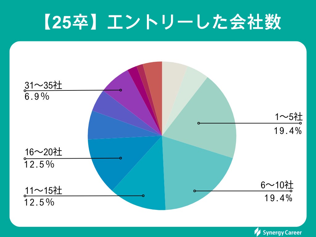 エントリーする企業数は、人によって前後はあるものの、基本的に複数社エントリーする就活生が多いようです。エントリーしていない就活生も、4.9%と少数でした。