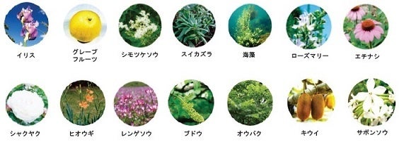 *2 イリス根エキス、グレープフルーツ果実エキス、セイヨウナツユキソウ花エキス、スイカズラ花エキス、アスコフィルムノドスムエキス、ローズマリー葉エキス、エチナシ葉エキス、シャクヤク花エキス、ヒオウギエキス、レンゲソウエキス、ブドウ葉エキス、キハダ樹皮エキス、キウイエキス、サボンソウ葉エキス(全て保湿成分)