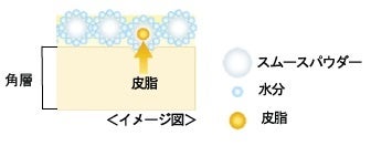 まわりに水分を吸着し肌の上に留め、内部に皮脂を取り込むスムースパウダー*1配合。日やけ止め特有のきしみやべたつきがなく、しっとりうるおっているのにさらさらした使用感です。