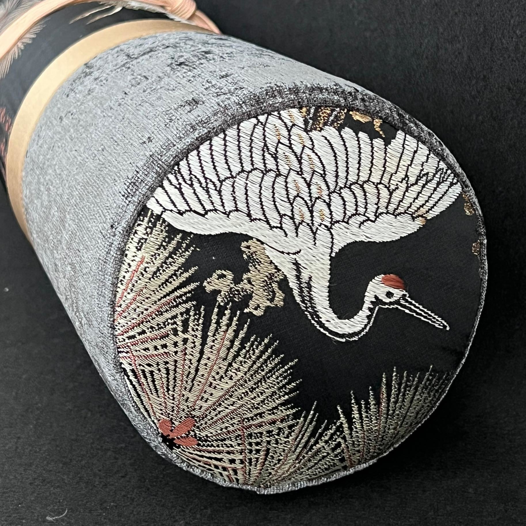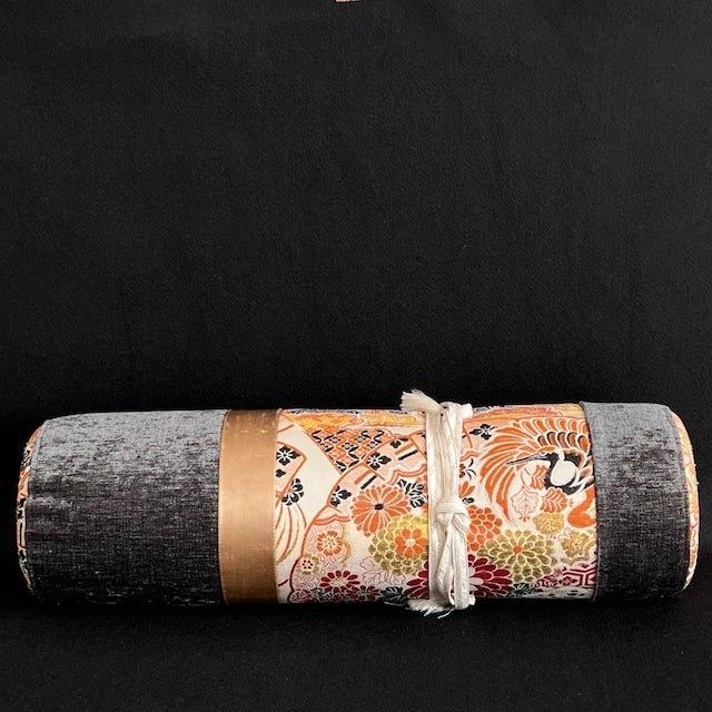 アンティークの着物帯をアップサイクルし、インテリアとしても映えるクッションに