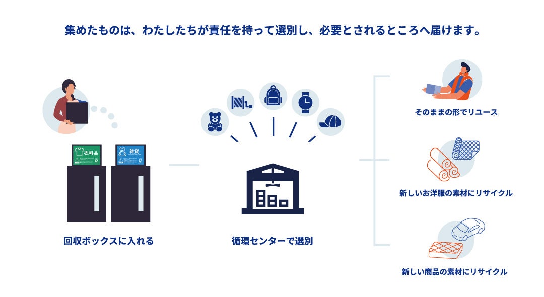 第一弾として、千葉エリアの4店舗(イオンモール成田/イオンモール千葉ニュータウン/イオンモール富津/イオンモール木更津)において、不要品回収BOXを常設し、11月25日よりサービスを順次開始いたします。