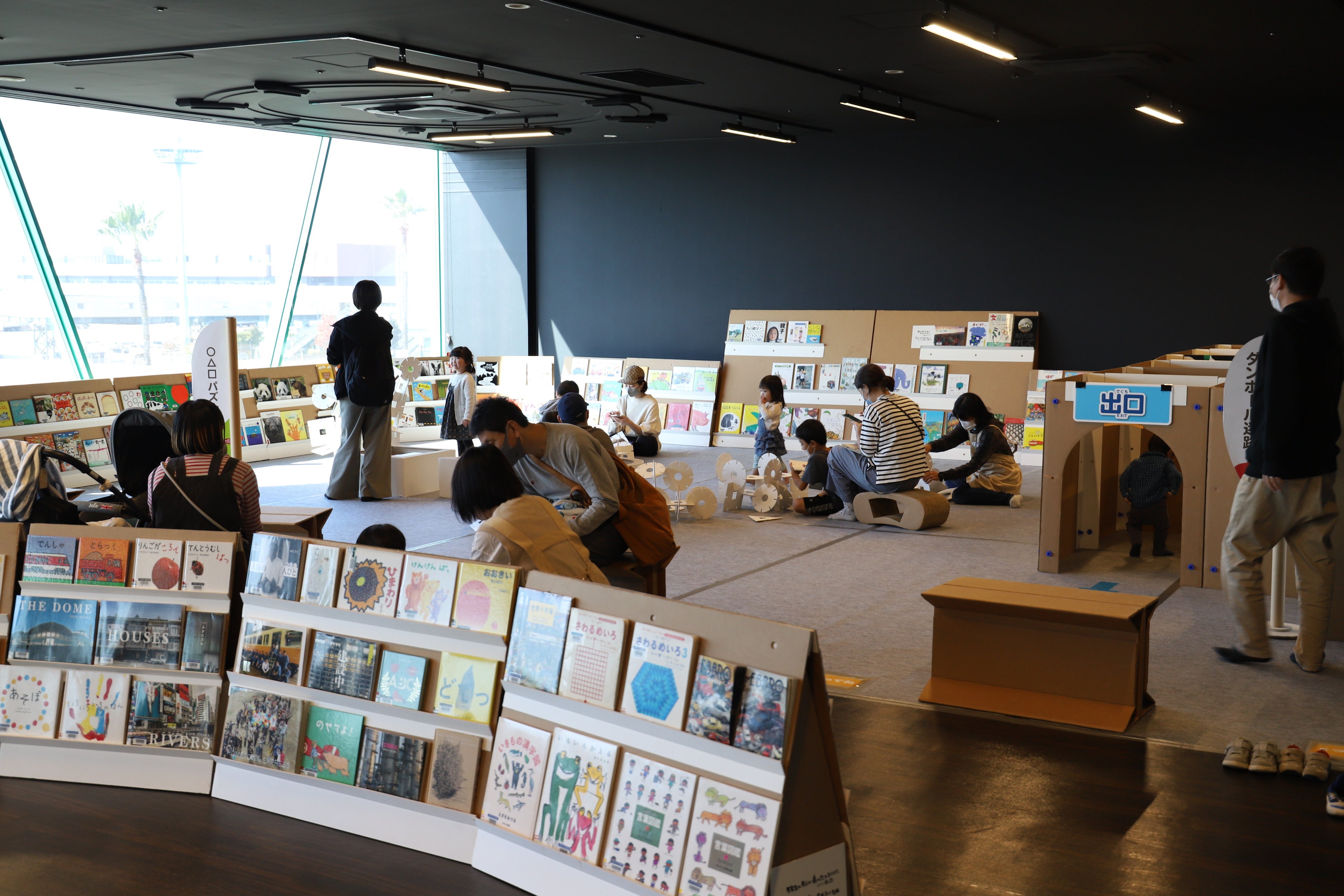 見たことのある絵本から、新しい絵本まで500冊を揃えています。思い出の本や、新たに見つけた本の感想を親子で会話をしながら楽しめる空間です。子どもの想像力を豊かにする「絵本のひろば読み」やペーパークラフトのワークショップ、ダンボールでできた迷路やシーソーもあるので、ぜひ親子で楽しんでください。