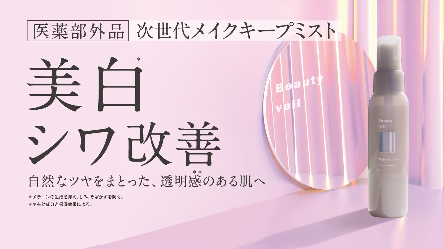キープ力を誇るビューティヴェールメイクキープスプレーシリーズに、美白*・シワ改善・肌あれニキビ防止効果を兼ね備えた「薬用メイクキープミスト」が新登場致しました。