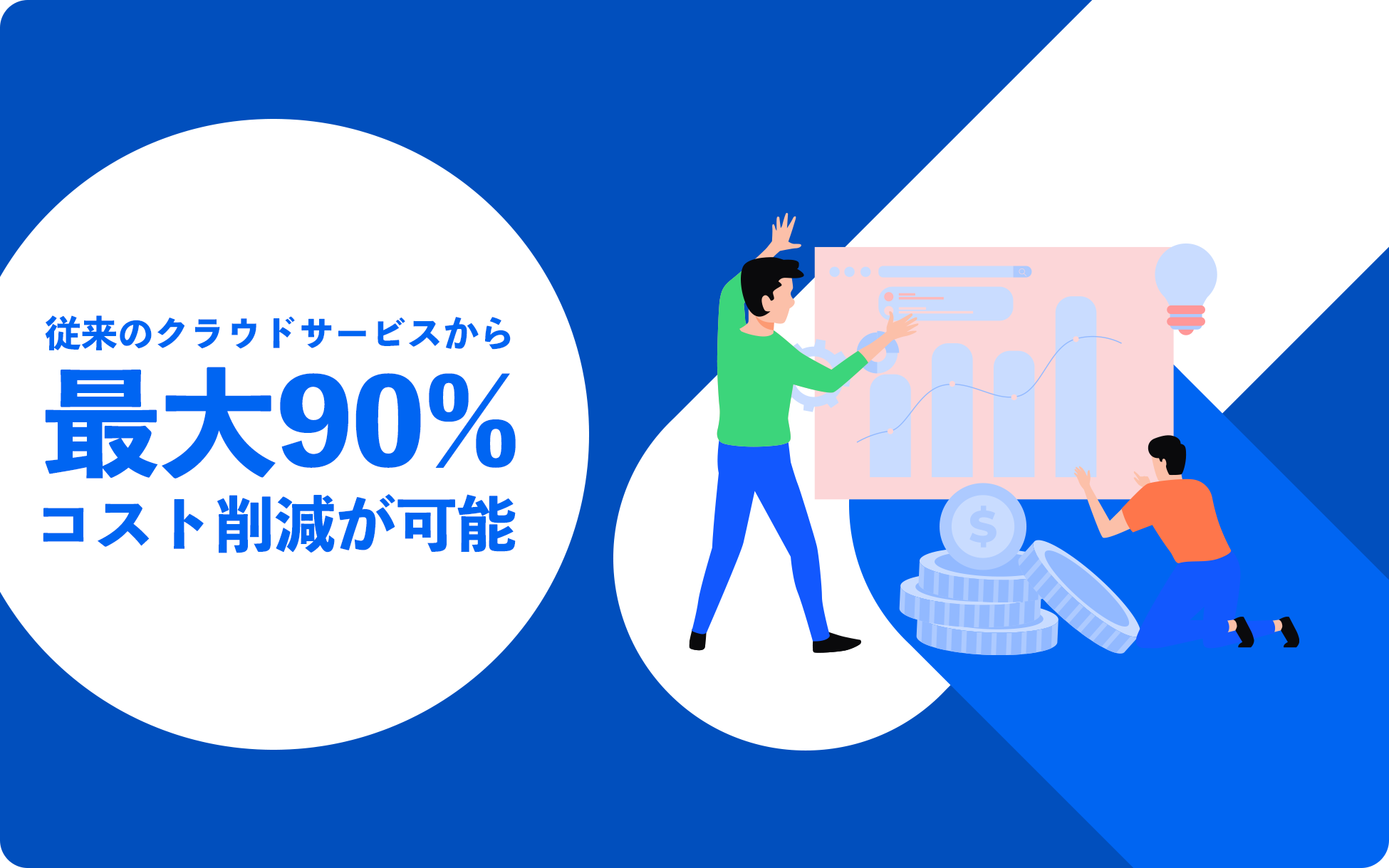 Linodeは価格設定が非常にシンプル(*1)に設計されており、サービス導入前に月額コストを把握しやすく、導入後に「予定より大幅にコストがかかってしまった」等の問題を解決することができます。また、料金も安く設定されており(*2)、「AWS・Azure・GCP」等の3大クラウドと比較して「最大90%」近くのコストを削減する事が可能です。ランニングコストを安く抑えられるため、予算を確保しにくい新規事業にお勧めです。