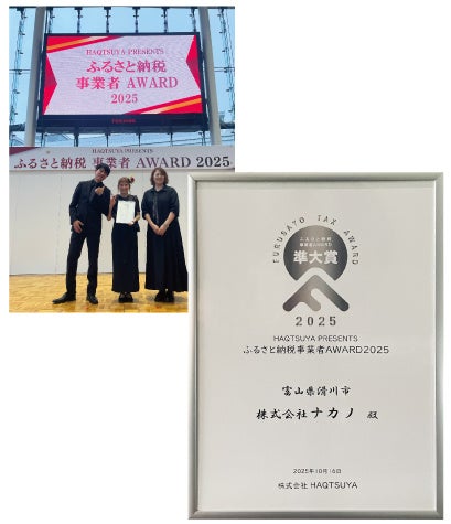 ステンレス製品の製作・加工・販売をおこなう株式会社ナカノ(本社:富山県黒部市、代表取締役社長:中野 隆志)は、福井駅前のオープンスペース「ハピテラス」で10月16日(木)に開催された、株式会社HAQTSUYA主催の「ふるさと納税事業者AWARD 2025」に参加しました。