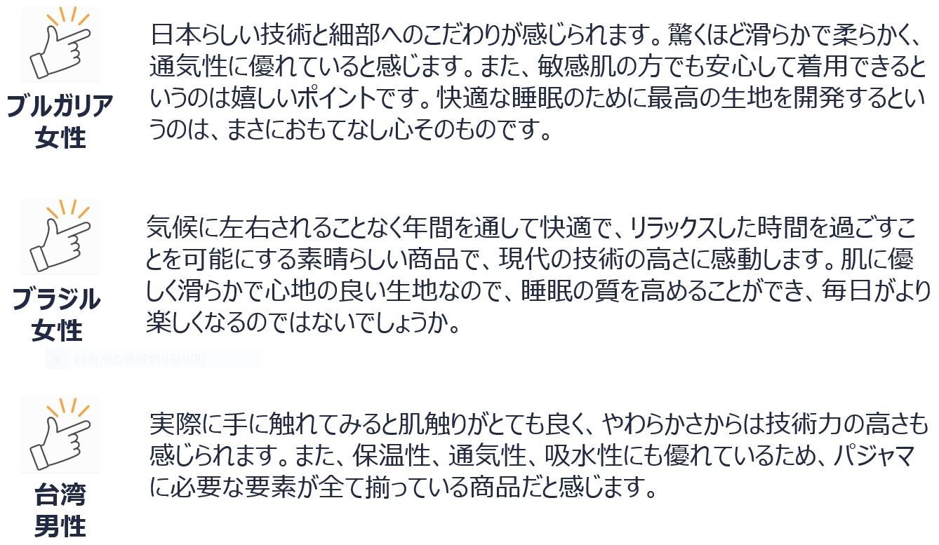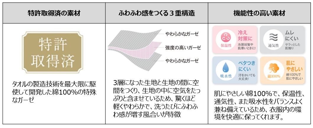 2015年のOMOTENASHI Selection創設から、連続して金賞を受賞しているのは、「マシュマロガーゼ®」のみとなります。日本らしい創意工夫でユーザーの悩みにアプローチする姿勢や、サステナブルな取り組みが本年度も高く評価され、「マシュマロガーゼ®」はOMOTENASHI Selection史上初となる8年連続で金賞を受賞しました。また、「奇跡のタオル®」と「しあわせタオル®」も同じく金賞を受賞。 3商品それぞれが異なる特徴を持ち、 それらの特徴をつくりだす技術力や追求する姿勢も高い評価につながりました。