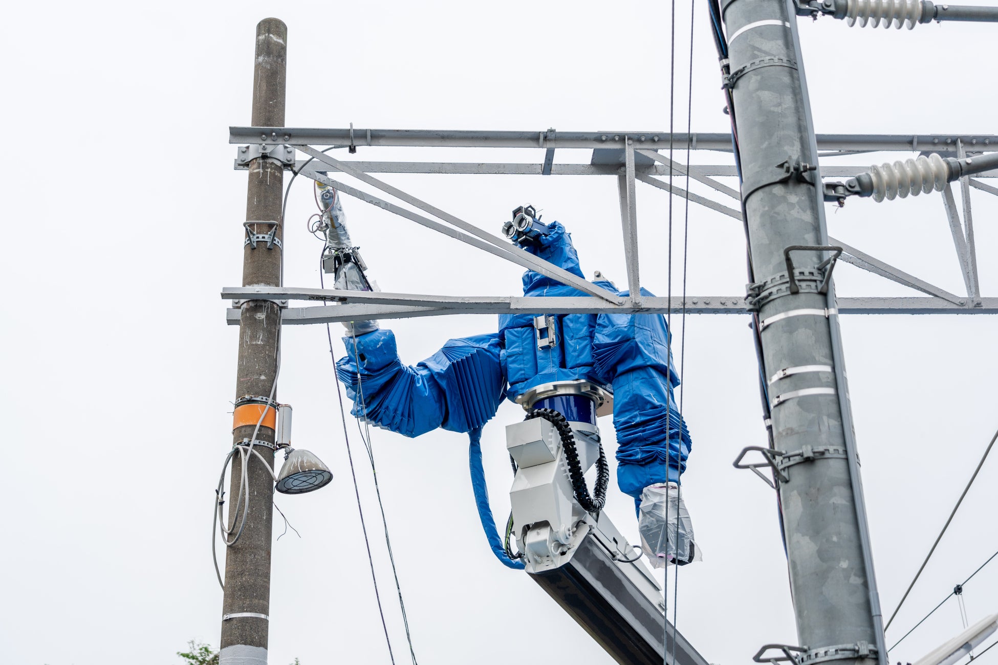 多機能鉄道重機は、人機一体、JR 西日本、日本信号により共同研究開発された、社会実装コンセプトとしての PoC 試作機『零式人機 ver.2.0』をベースとして開発・製造されており、「力制御・トルク制御技術」「パワー増幅バイラテラル制御技術」などの人機一体独自の先端ロボット工学技術が搭載されています。零式人機 ver.2.0 同様に、ブーム先端に人型重機が搭載されており、人は安全な場所に設置された操縦席から人型重機を遠隔操作することで、人が危険な高所に登ることなく高所重作業を行なうことが可能となります。