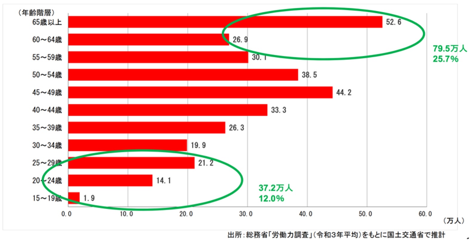 国土交通省が 2021 年 10 月に纏めた「最近の建設業を巡る状況について」の報告資料によると、インフラメンテナンスを含む建設業の就業者数は 1997 年の 685 万人をピークとして減少傾向にあります。また、60 歳以上の技能者が全体の 25.7% であり、2031 年までにはその大半が引退することが見込まれている一方で 29 歳以下の技能者は 12% 程度に留まっており、技術継承問題などが懸念されています。このような状況下で若手技能者の確保・育成と同時に生産性の向上が喫緊の課題とされています。