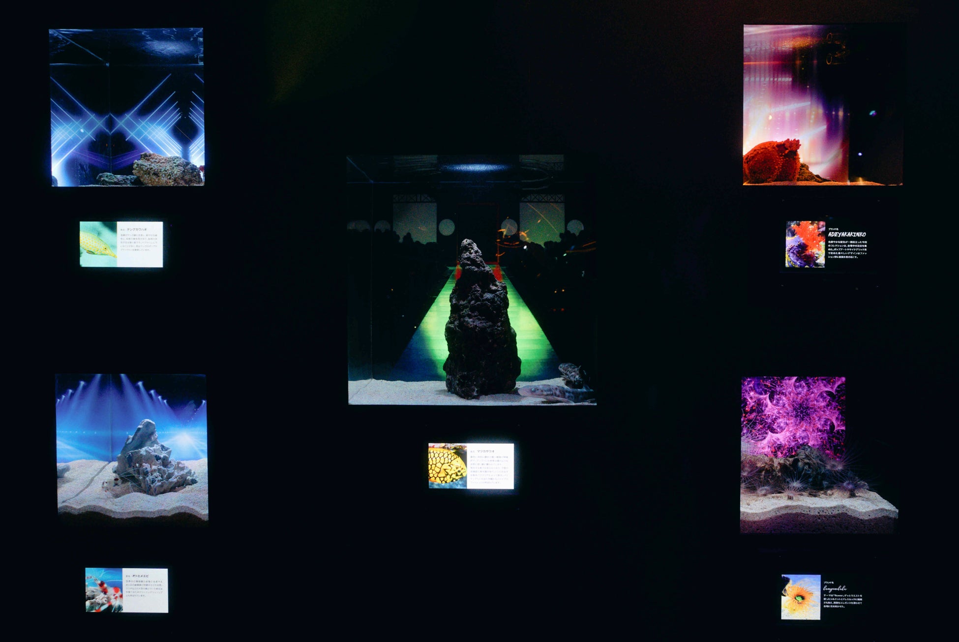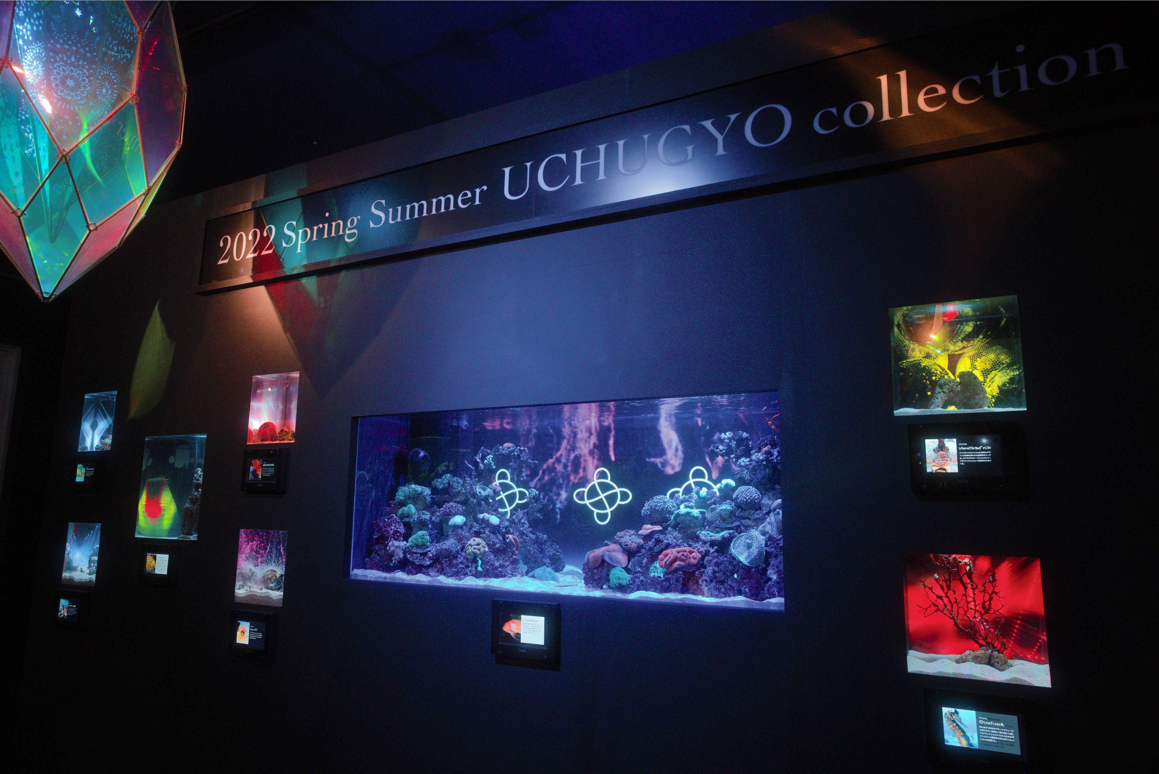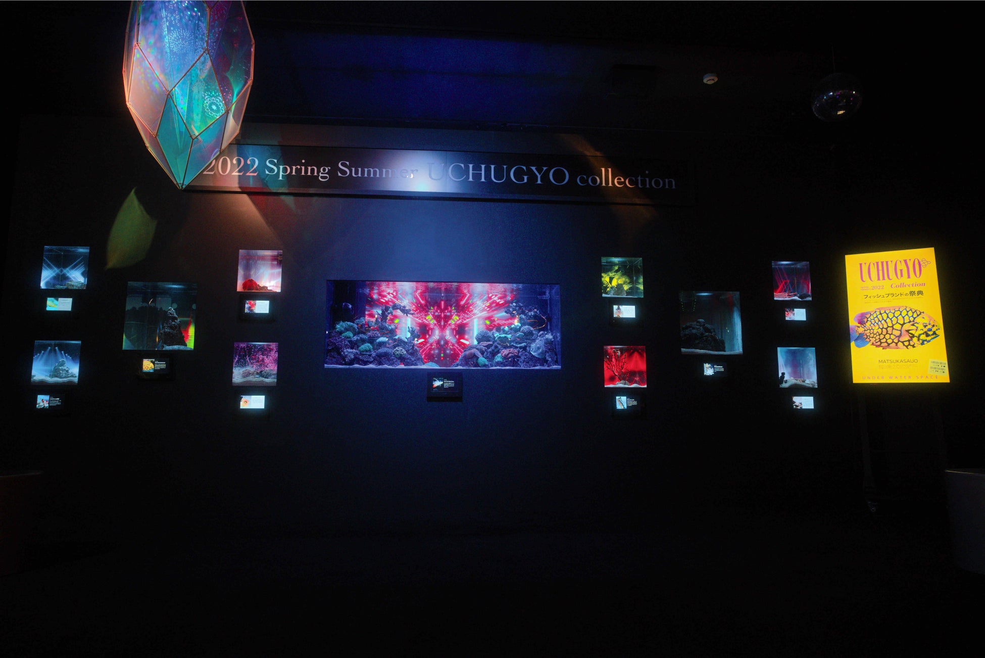 魚をアパレルブランドへ見立て、宇宙魚のファッションショーをコンセプトに新たに11本の水槽を増設しました。店舗では魚の説明に加え、宇宙魚ブランドのコンセプトも展示しております。
