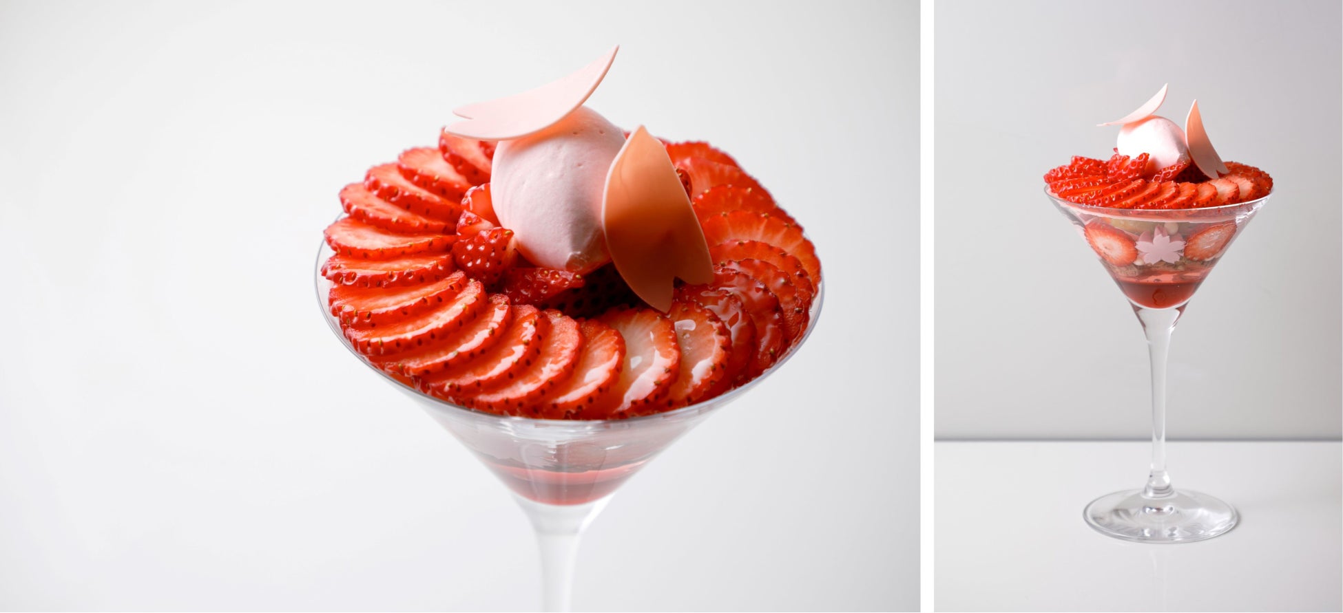 一斉に満開となり咲き乱れるもあっという間に散り行く季節を象徴する桜。人々を魅了する桜の潔くも儚げな圧倒的美を表現したオリジナルパフェを、桜の咲く季節に合わせ期間限定でご用意いたします。