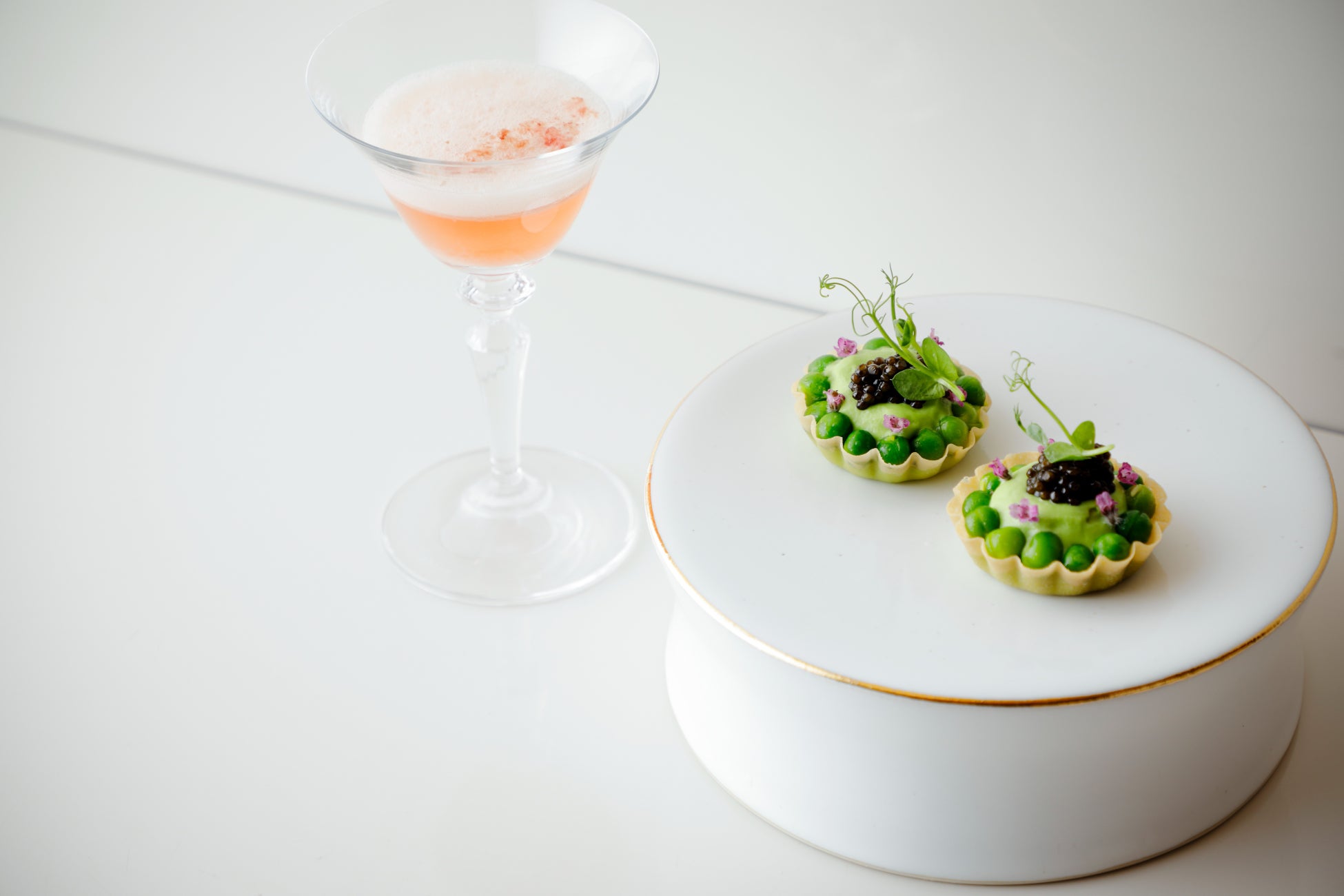 「えんどう豆とキャビアのタルト」 / ウェルカムティー