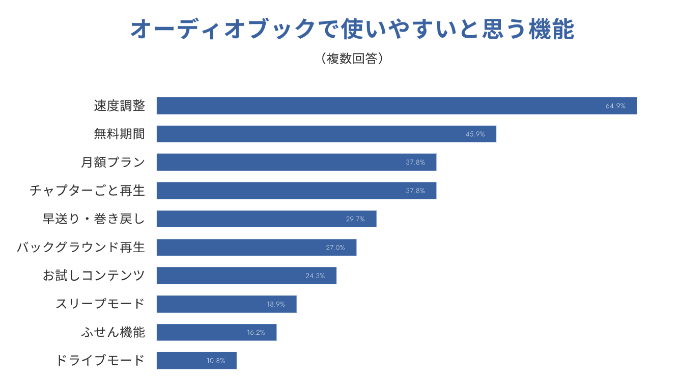 続いて、オーディオブックで使いやすいと思う機能を尋ねたところ、以下のような結果となりました。