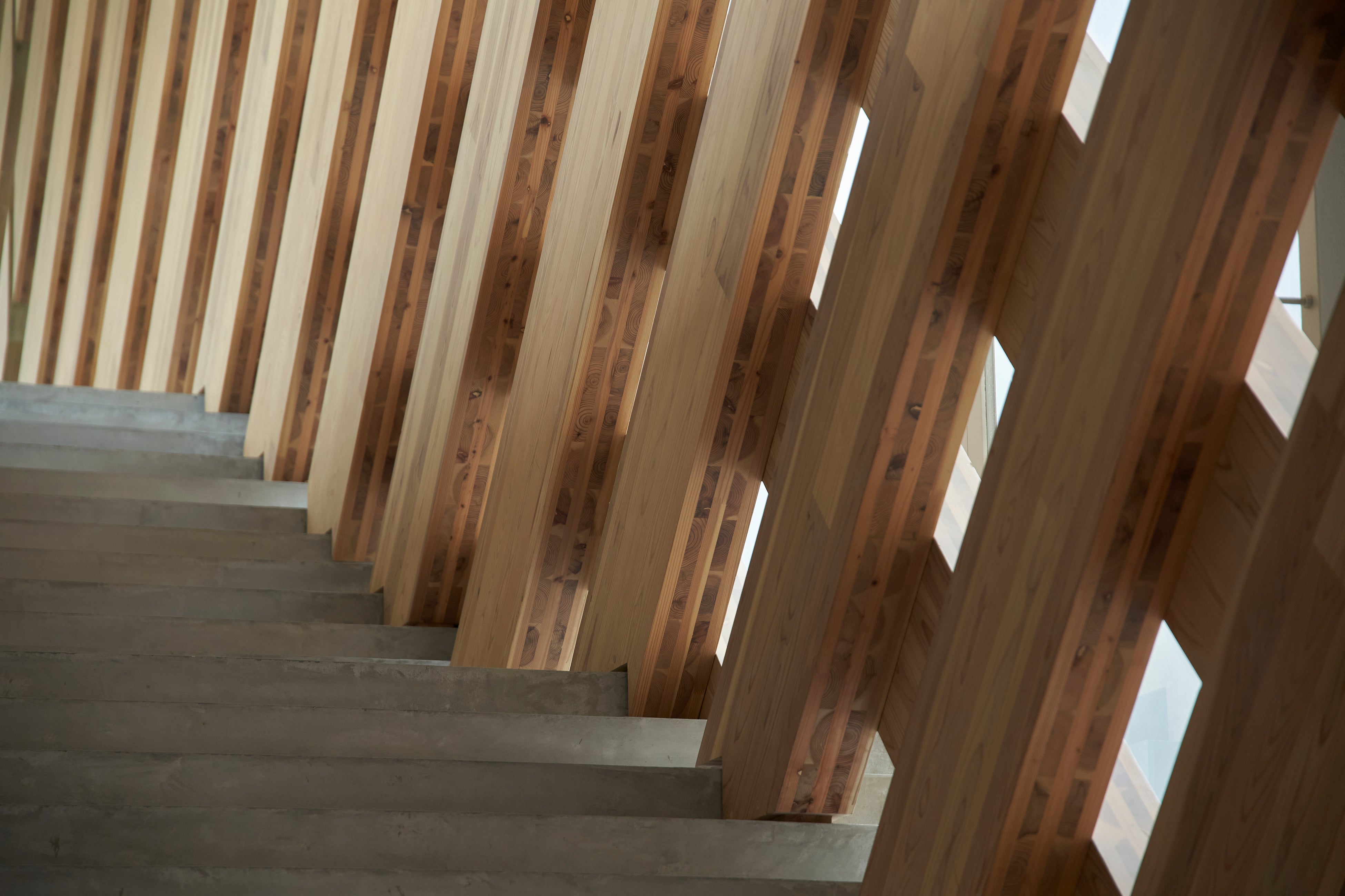 その構造体は本土で精密にプレカットされ、離島の施工環境に合わせて最小限の工程で組み立て可能な「リモート構法」を採用。省工程・省移動によるCO₂削減や、CLTがもたらすカーボンストレージ効果など、ジオパークの理念とも共鳴する設計となっています。