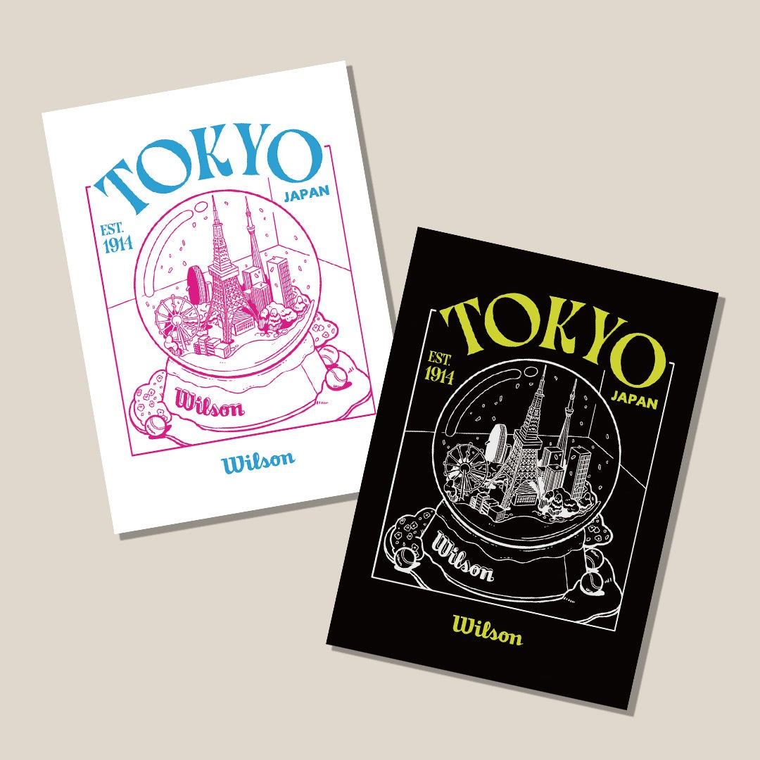 オープンを記念して、ウイルソン 東京丸の内ブランドストア 限定のTシャツを発売いたします。(数量限定) グラフィックデザイナーMQが書き下ろしたグラフィックのプリントが施されています。