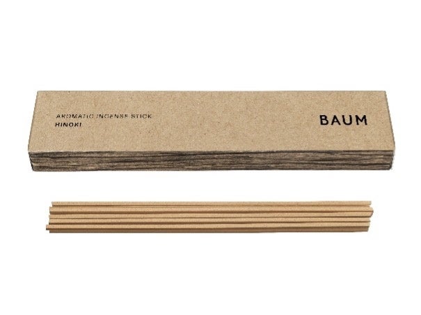 BAUM商品を10,000円(税抜)以上お買い上げのお客様には購入特典として「BAUMオリジナル インセンススティック HINOKI」を差し上げます。リニューアルしたスキンケアの香りをベースに120年以上続く老舗「薫寿堂」とコラボレーションしたふくよかなヒノキの香りをお楽しみください。