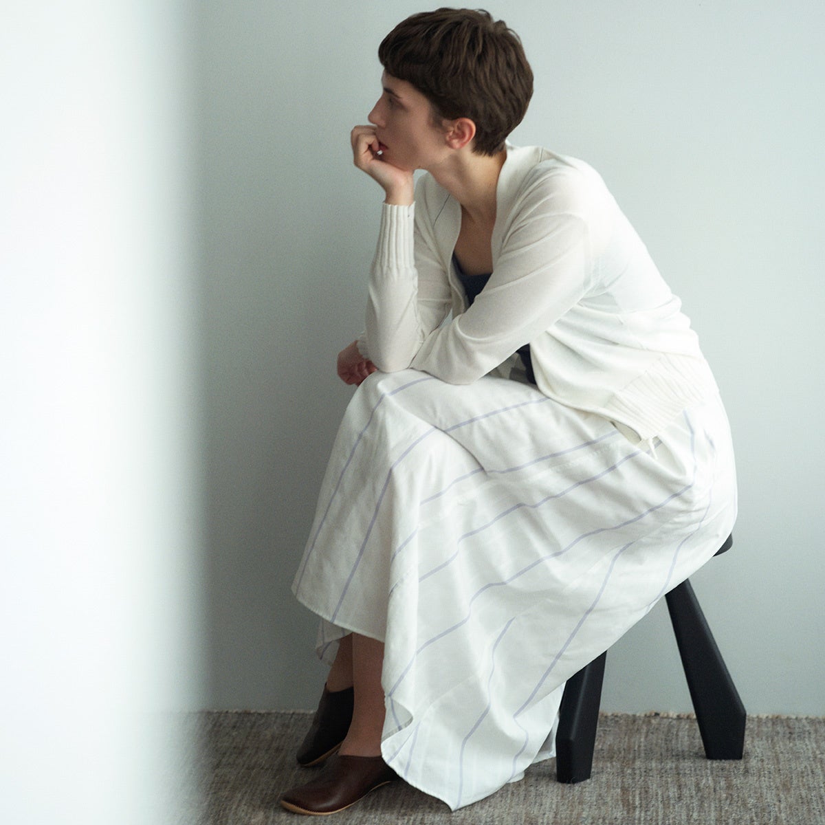 また、今シーズンは着るほどに肌になじむコットン素材や、軽やかな着心地のシルクネップのツイードジャケットなどマテリアルの表情を楽しみながら、ほどよく時代のムードを感じ、永く手元に置いていただけるコレクションを展開します。