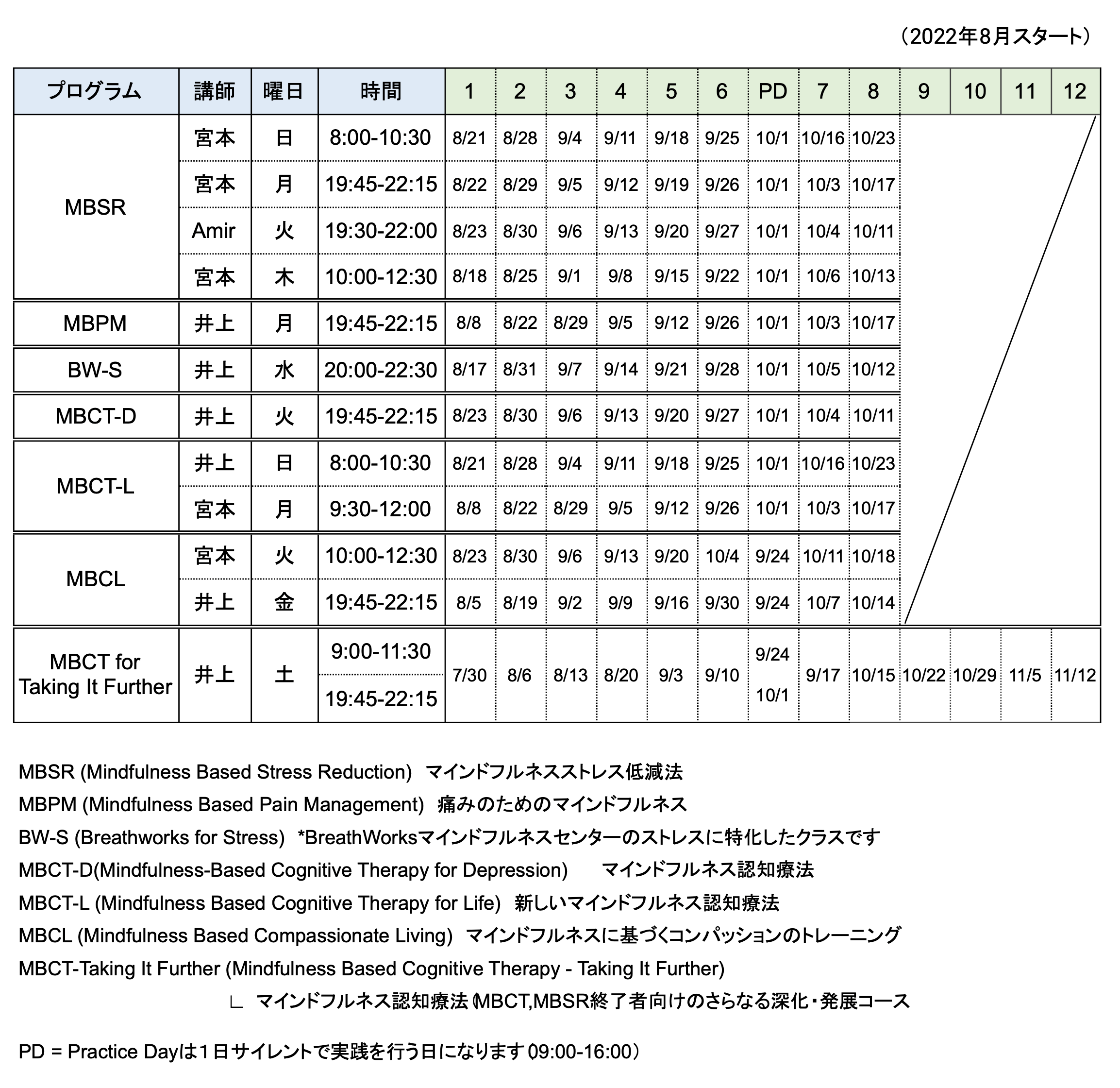 - マインドフルネスストレス低減法(MBSR)8週間コース