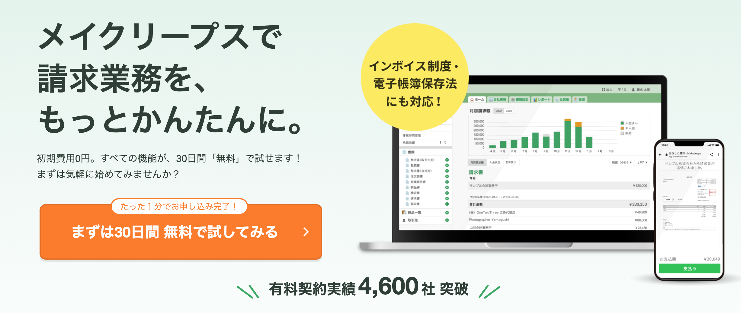 クラウド型請求管理サービス「MakeLeaps」:請求管理をかんたんに。中小企業の請求業務DXを実現