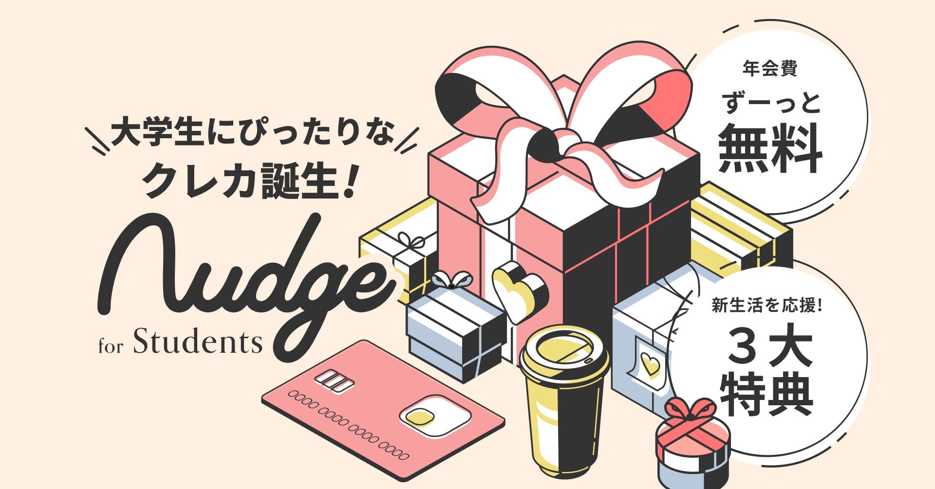 Nudgeは、これまでクレジットカードを利用する機会が少なかった若い世代のファーストカード・メインカードとなるべく、おしゃれで楽しみながらキャッシュレス生活を送ってもらえるように、学生向けクラブの開設に至りました。