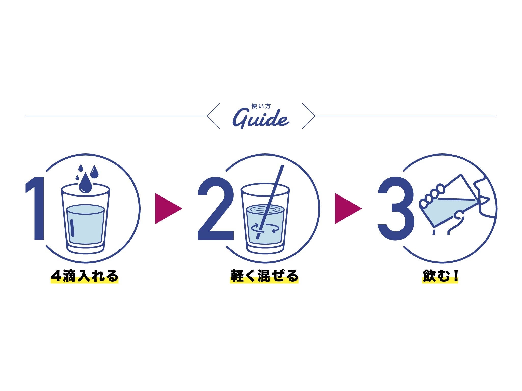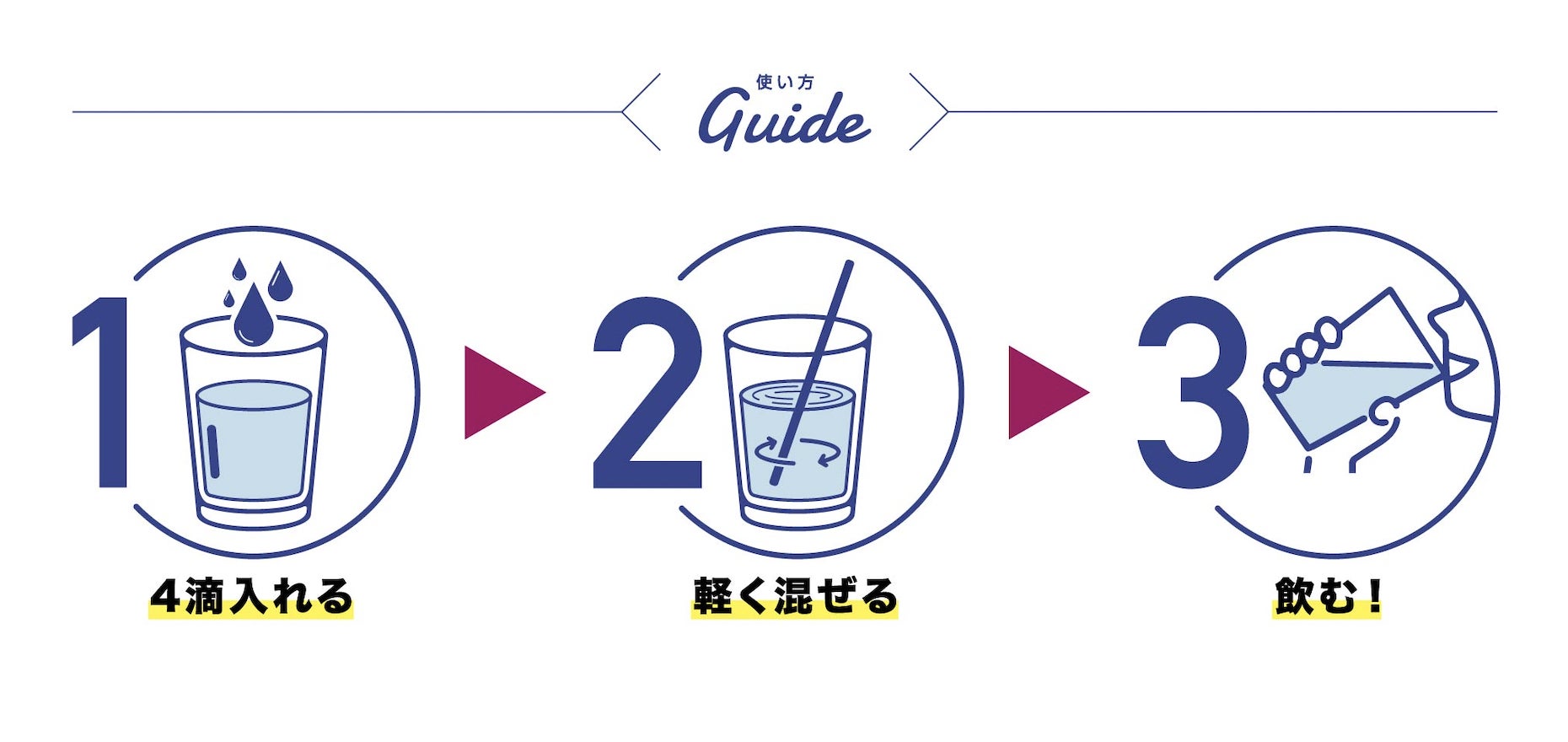使い方は簡単、お好みのお飲み物に4滴垂らして混ぜるだけです。