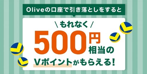 クレジットカードや携帯料金など毎月のお支払をOliveの口座から引き落としすると、500円相当のVポイントがもらえます!