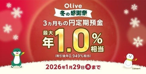 ①Olive新規開設+10万円入金で10,000円相当&1ヵ月もの円定期預金年3.0%(税引前)相当をプレゼント!