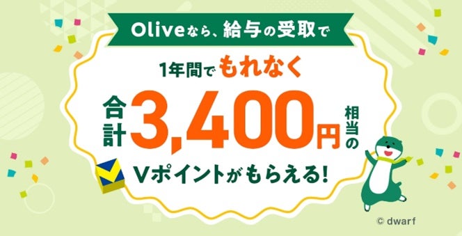 ②エントリー+Oliveでの給与受取で1年間で最大3,400円相当のVポイントプレゼント!