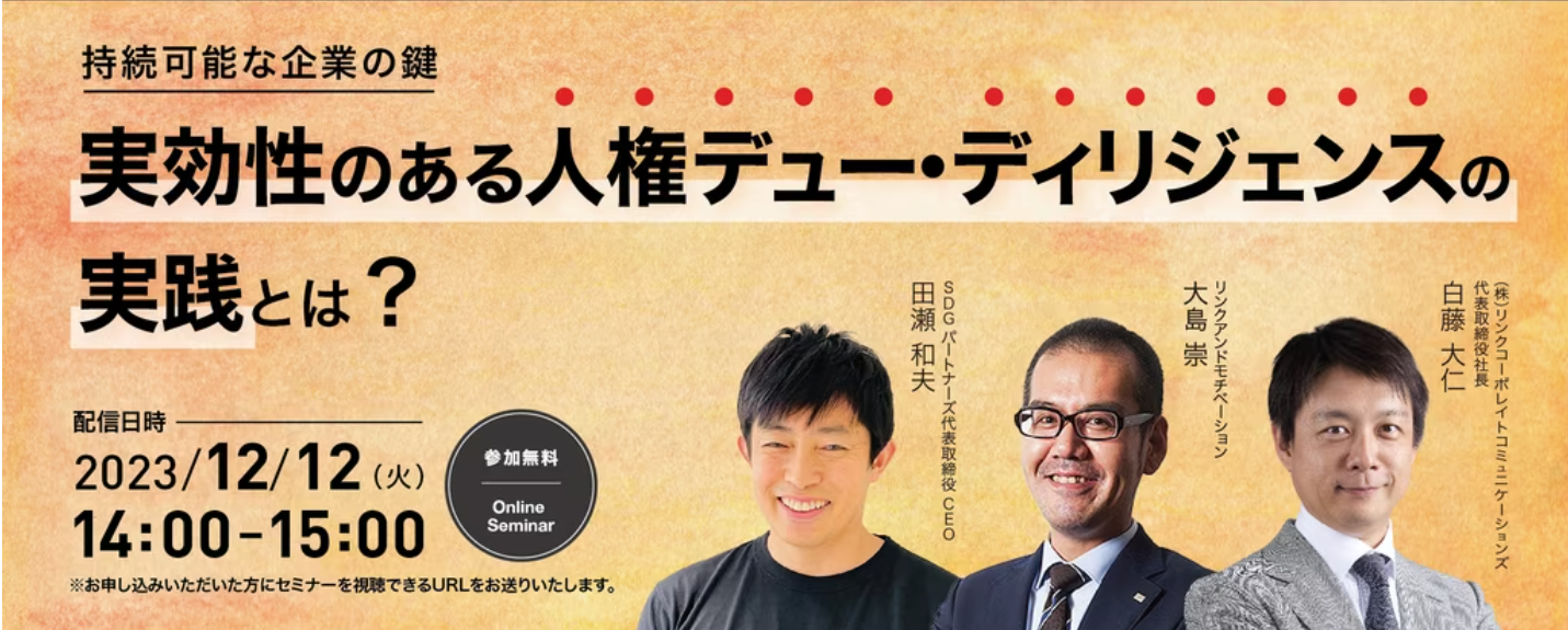 人権デュー・ディリジェンスにご興味をお持ちのIR広報・経営企画・サステナビリティご担当者様は、是非ご視聴ください。