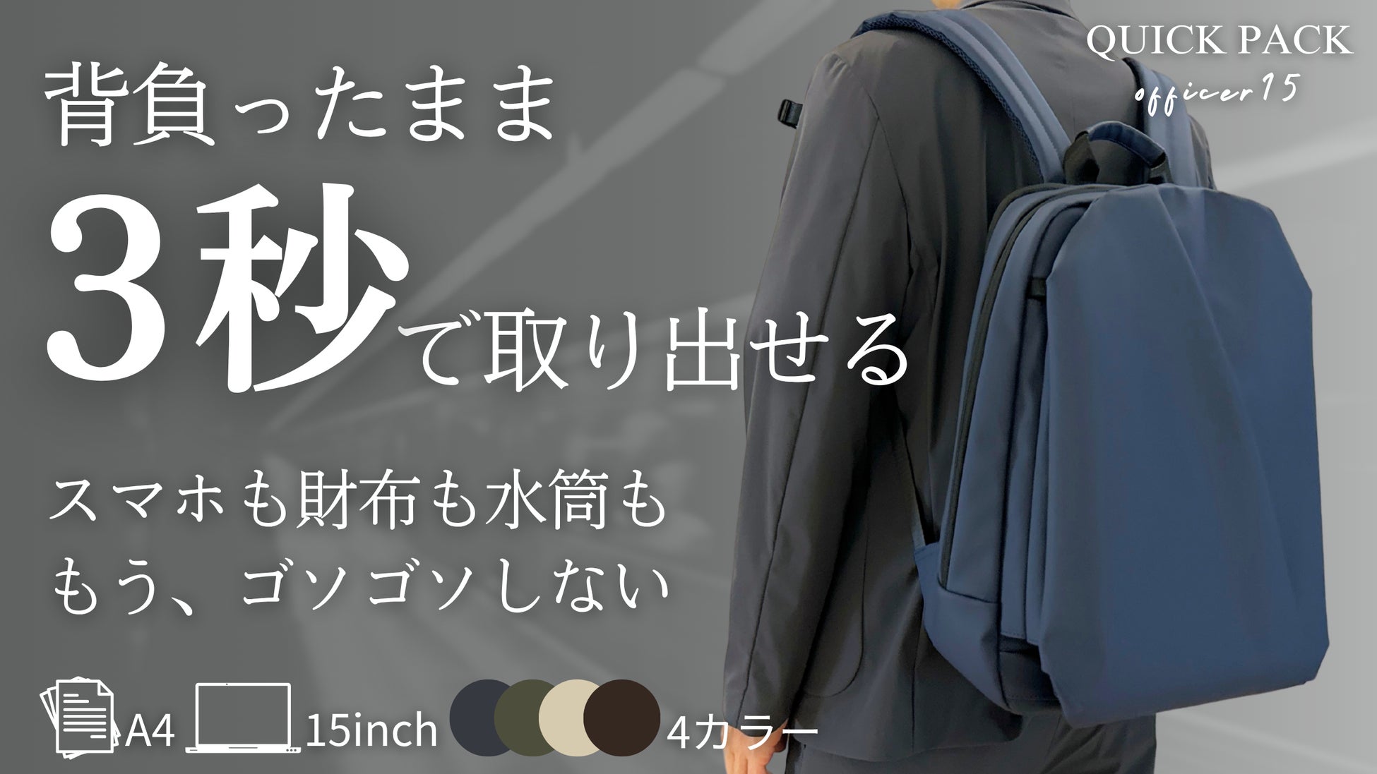 “荷物が迷子”の通勤ストレスに終止符を。サッと取り出し、動きを止めない快適通勤リュック『QUICK PACK officer 15』がMakuakeで先行販売スタート