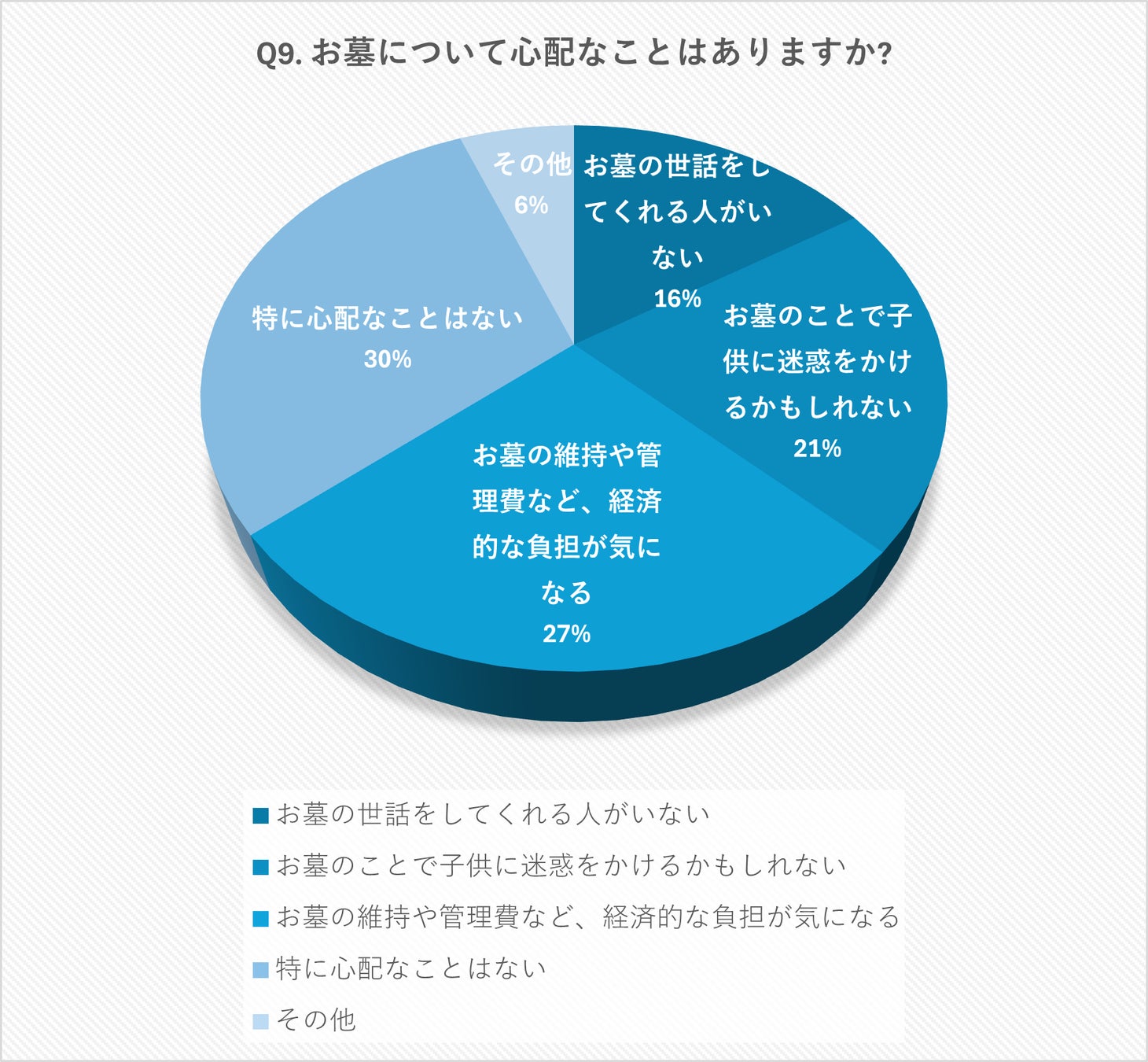 お墓の維持や管理費など、経済的な負担が気になる=27%