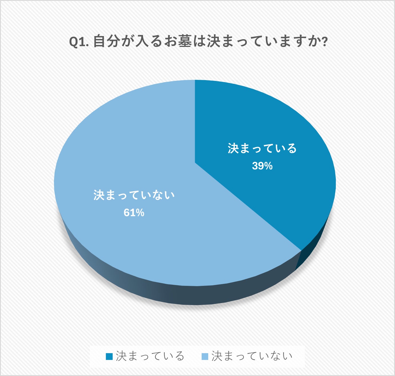 「自分が入るお墓は決まっていますか?」の質問には、「決まっている(39%)」「決まっていない(61%)」という回答になりました。