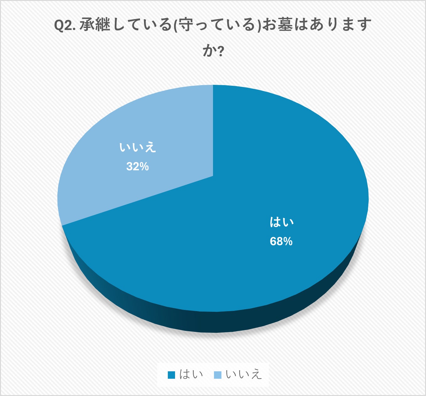 「承継している(守っている)お墓はありますか?」の質問には、「はい(68%)」「いいえ(32%)」という回答になりました。