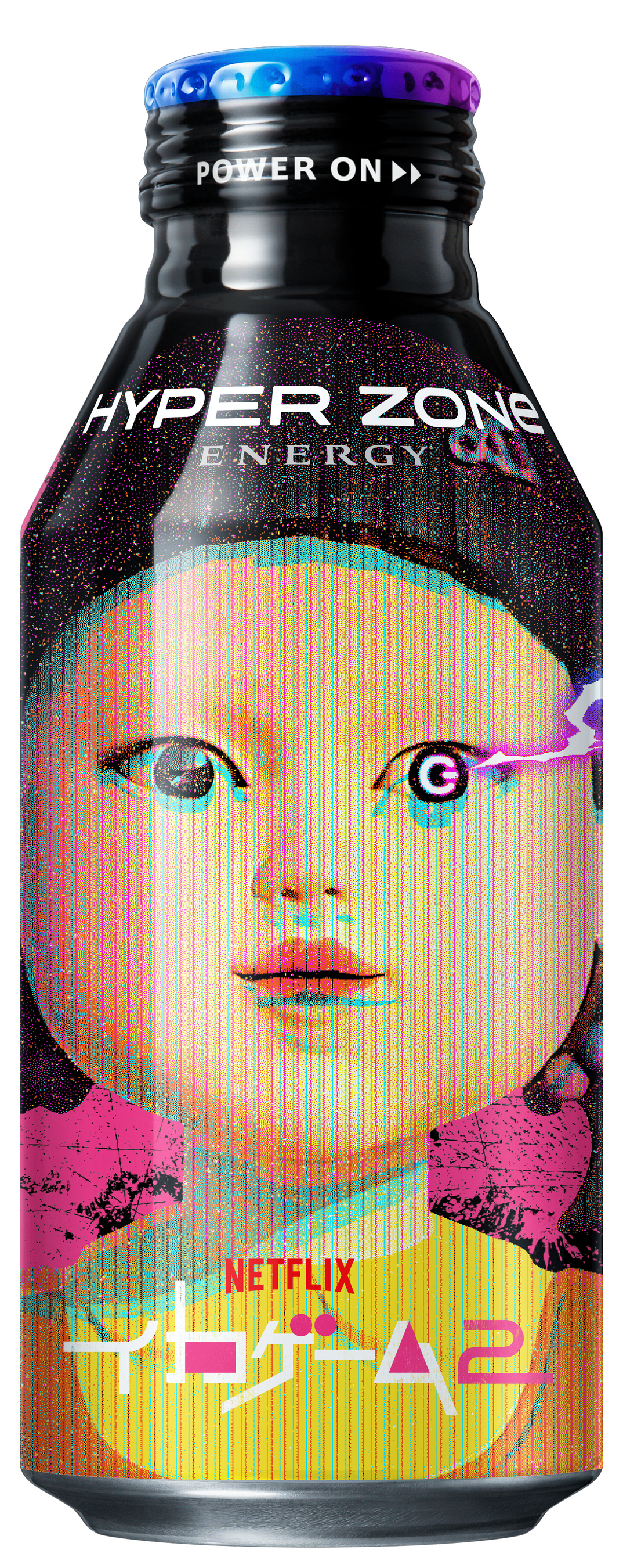 「HYPER ZONe」シリーズ初のオリジナルデザイン缶となる本製品は、「イカゲーム」の象徴的なキャラクターであるヨンヒ、ピンクガード、フロントマンがデザインされた限定商品です。缶に印字されている二次元コードを読み込むと、オリジナルコラボムービーを視聴することができるスペシャル仕様となっています。オリジナルコラボ缶を飲みながら、是非コラボ映像をお楽しみください。
