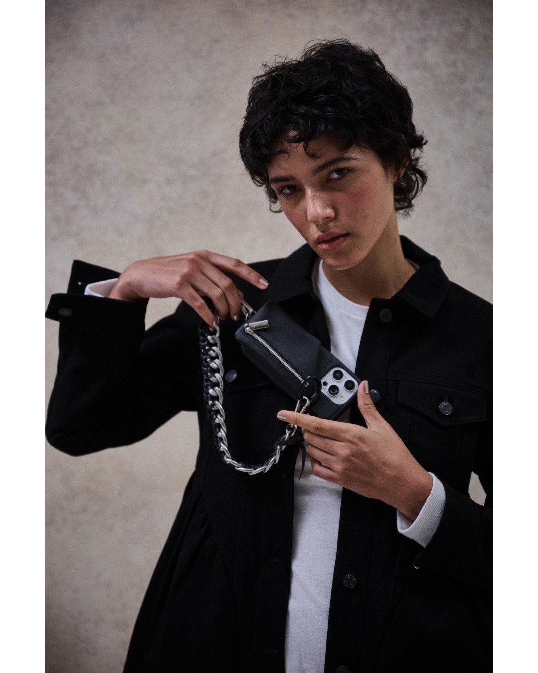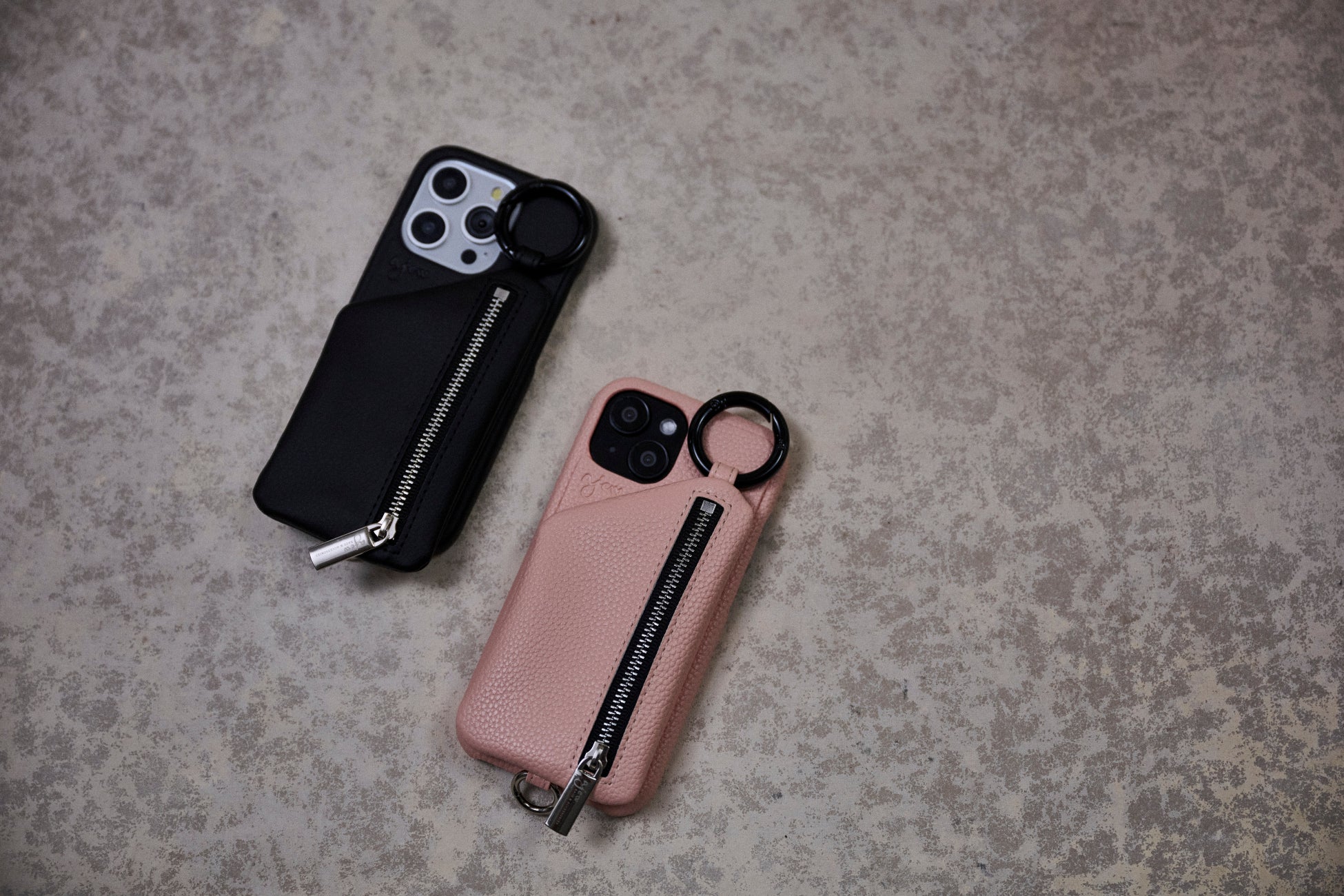 ajewの定番ケース【cadenas zipphone case series】は、シルバーリングとファスナーポケットが象徴的な定番モデル。