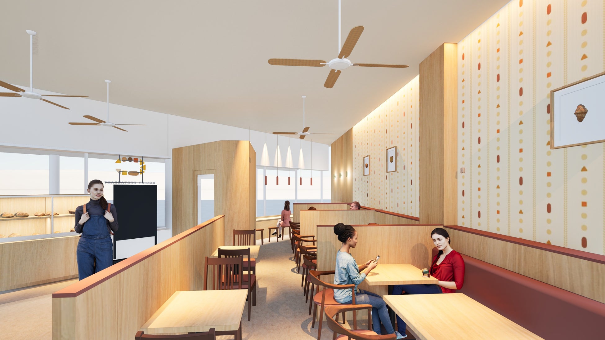 約70席の店内にて、友人とランチでゆっくりと食事をする場所として、ショッピングの合間にリラックスする場所として、ブレイクタイムに集中できる場所として、朝のひとときをゆったりと過ごす場所として「どんなシーンでも、誰に対しても楽しく明るい世界」をコンセプトに様々な利用シーンに応じてご利用頂くことができます。